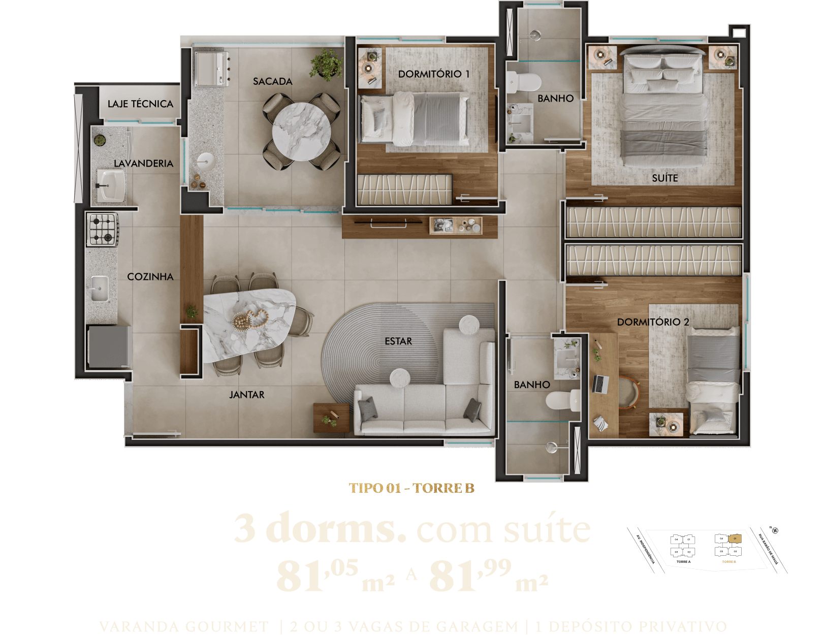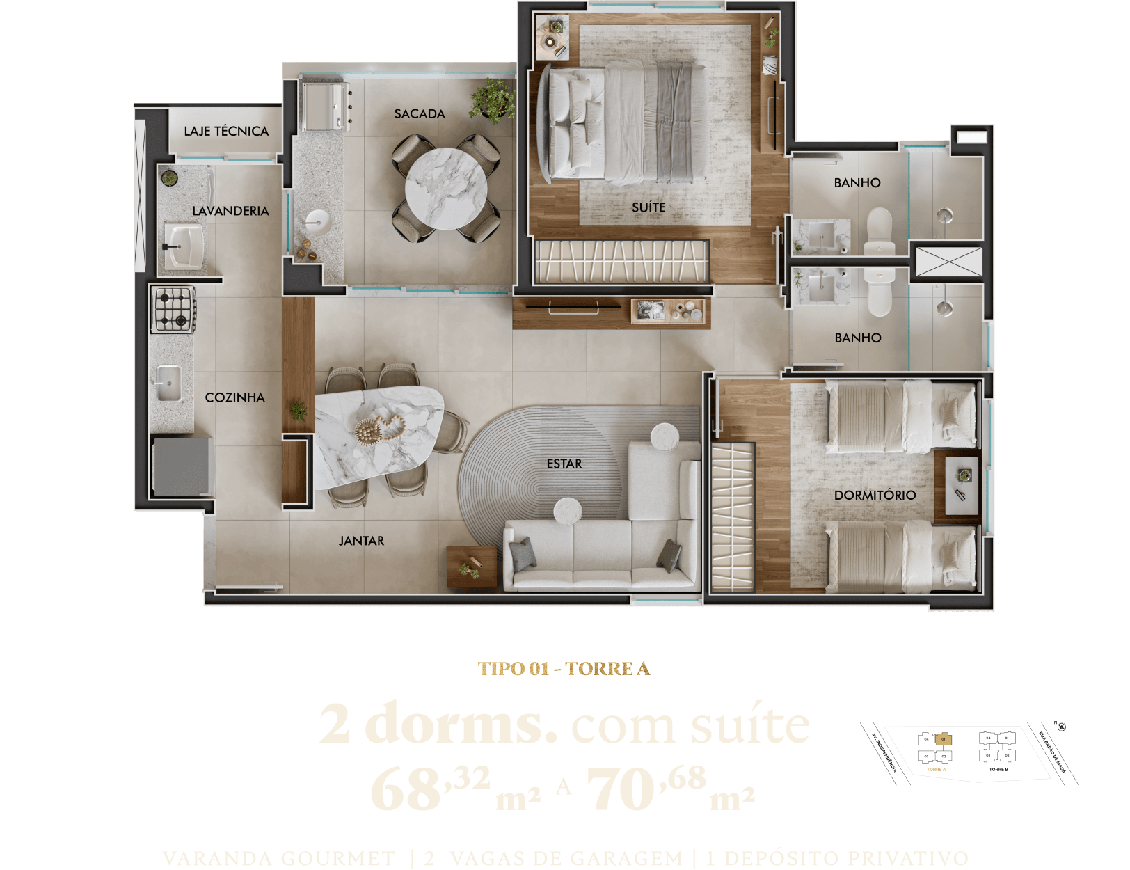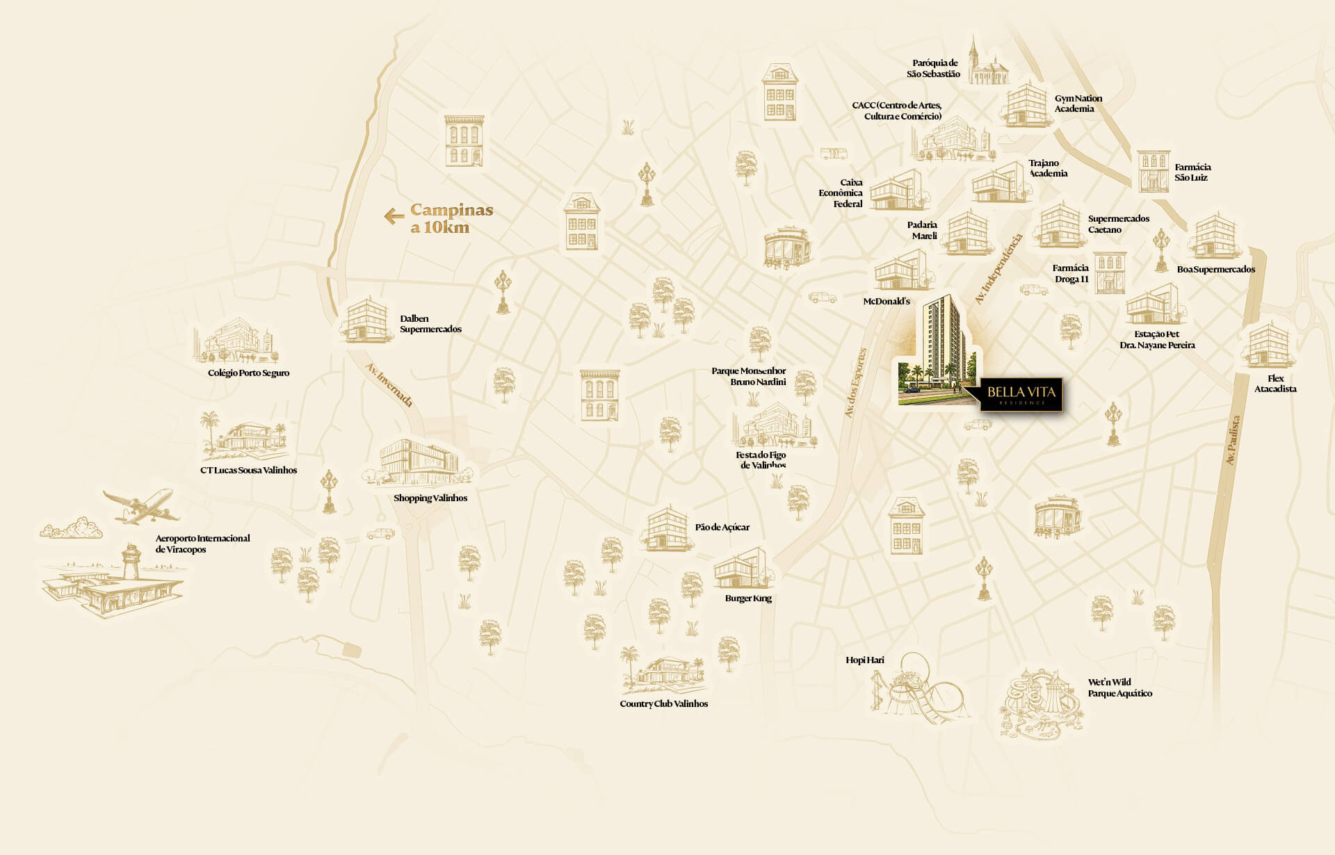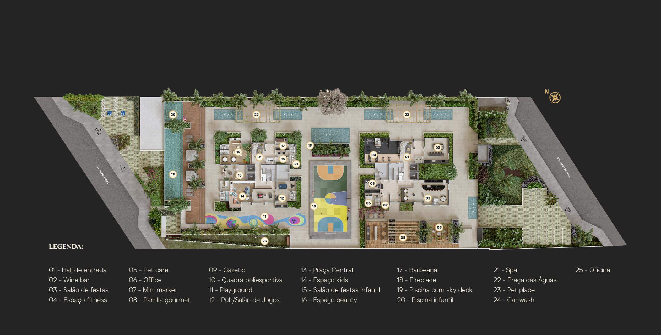 Um empreendimento único na região, que oferece infraestrutura completa e coloca você a poucos metros de distância de tudo que é essencial para seu dia a dia: escolas, supermercados, farmácias, academias, bancos, restaurantes e muito mais.